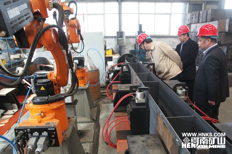 李鏡一行饒有興趣的參觀了河南礦山智能機加工車間、端梁焊接機器手、車輪鍛打流水線及新型起重機柔性生產線。對河南礦山在轉型升級、創新研發方面做出的成績給予了高度贊揚,并勉勵河南礦山要抓住機遇,增強市場競爭意識,進一步提升產品質量,加快產業升級、產品更新換代的步伐。