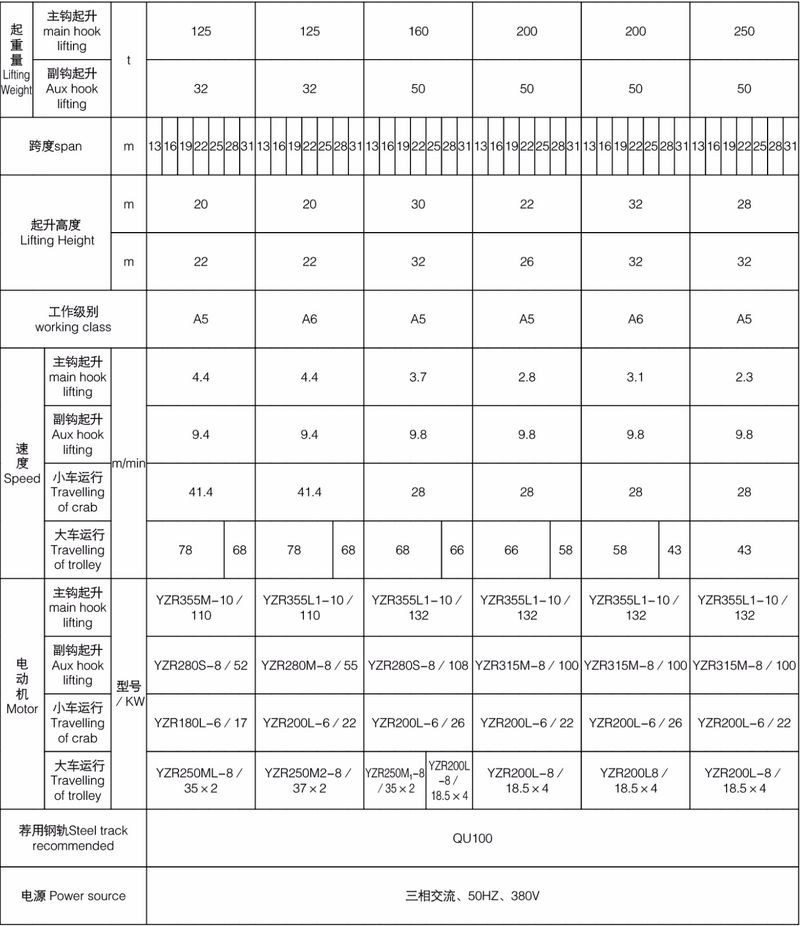 吊鉤橋式起重機125/32t-250/50t  13-31m