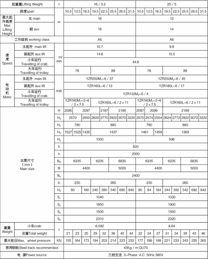 QY型5~20/5噸絕緣橋式起重機(jī)