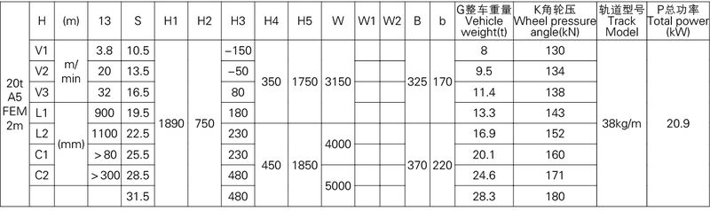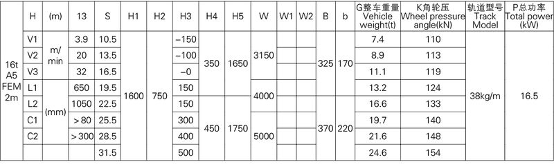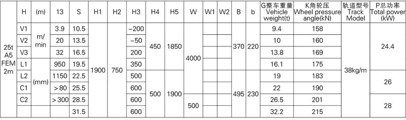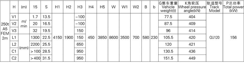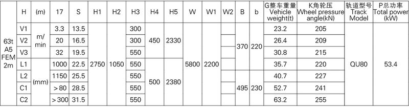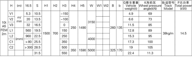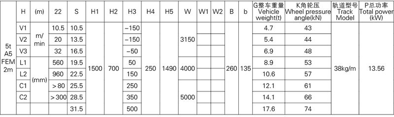 1、本產品系列表僅列出了常用的基本的規格起重機,工作級別為A5(FEM 2m)時的標準跨度,沒有副鉤的室內用起重機。客戶根據需要可以提出相應的要求。