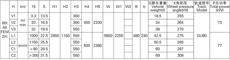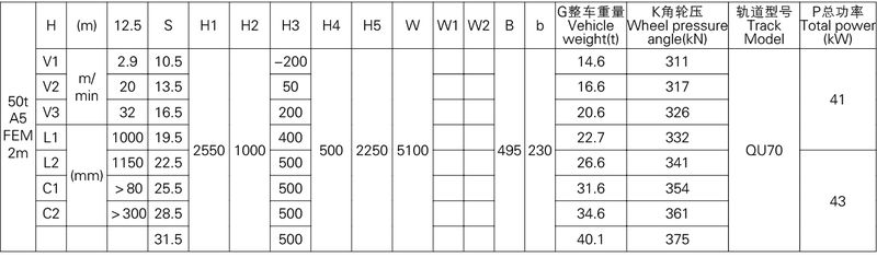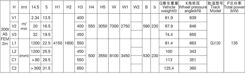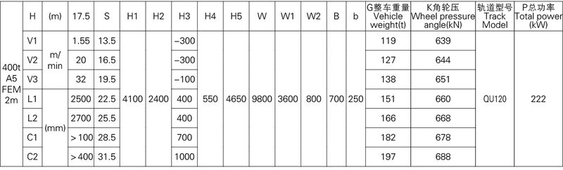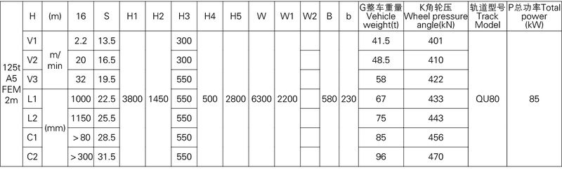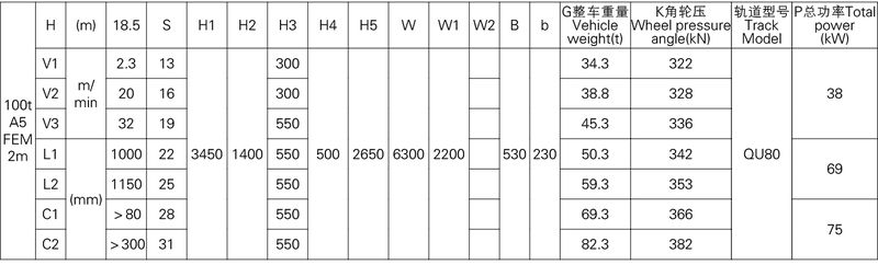 3、表中的尺寸,重量,輪壓供客戶訂貨時參考,如果客戶的需要條件發生變化,如工作級別,速度,起升高度有變化時,相應的參數,尺寸,重量,輪壓等都會發生變化,實際的參數,質量,輪壓以合同的要求為準。
